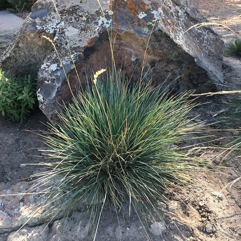 Leymus salinus ‘Salane’ (Basin Junior Wildrye) is a native perennial grass that forms a dense clump of narrow, slivery-green foliage. Subtle pale-yellow seeds emerge above the foliage on tall, thin spikes and mature to a sandy hue. This drought-tolerant Western native grass and thrives in hot, dry, rocky sites and high elevations.