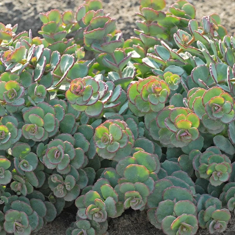 Sedum seboldii October Daphne’s unique and beautiful foliage provides contrasting color and texture when planted with small ornamental grasses and various lavender varieties. This stonecrop is valued for its fall display of deep pink flowers and its arching stems of succulent gray green foliage. 6-12″ tall x 12-15″ wide.